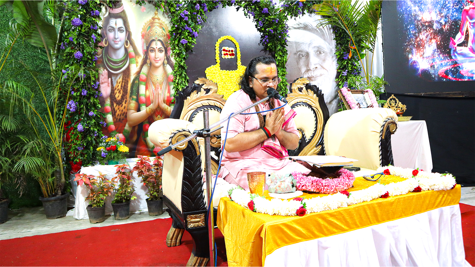 A spiritual guide rooted in Advaita Vedanta, Acharya Vasudev inspires inner awakening through divine kathas, satsangs, and selfless seva — walking the sacred path of silence, service, and self-realization.